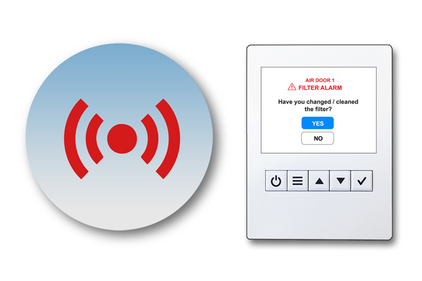 Pielāgojama Durvju AiztureDurvīm aizveroties gaisa aizkari noteiktu laiku turpina strādāt atvērtu durvju režīmā, lai būtu gatavi to atkārtotas atvēršanas gadījumam.